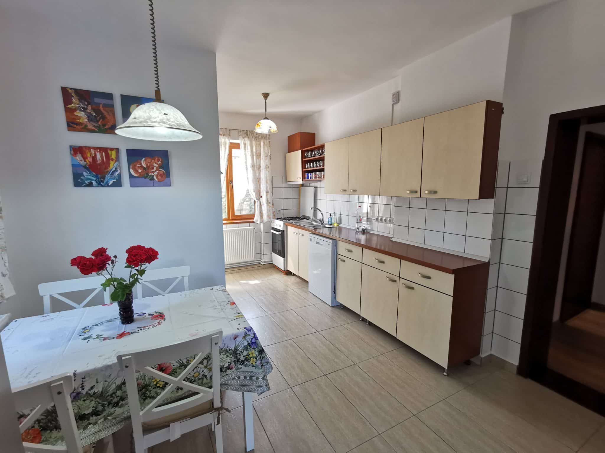 Bucătăria: Complet mobilată și utilată modern, separată de restul camerelor și dotată cu o cămară practică pentru depozitare.