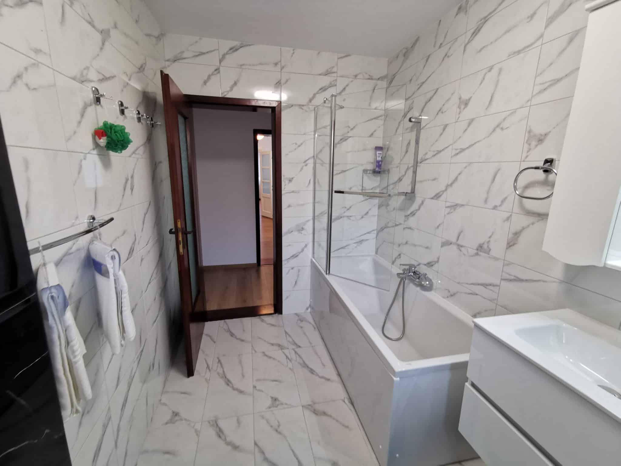Băile: Apartamentul dispune de 2 băi complet finisate, eliminând aglomerația din timpul dimineților.