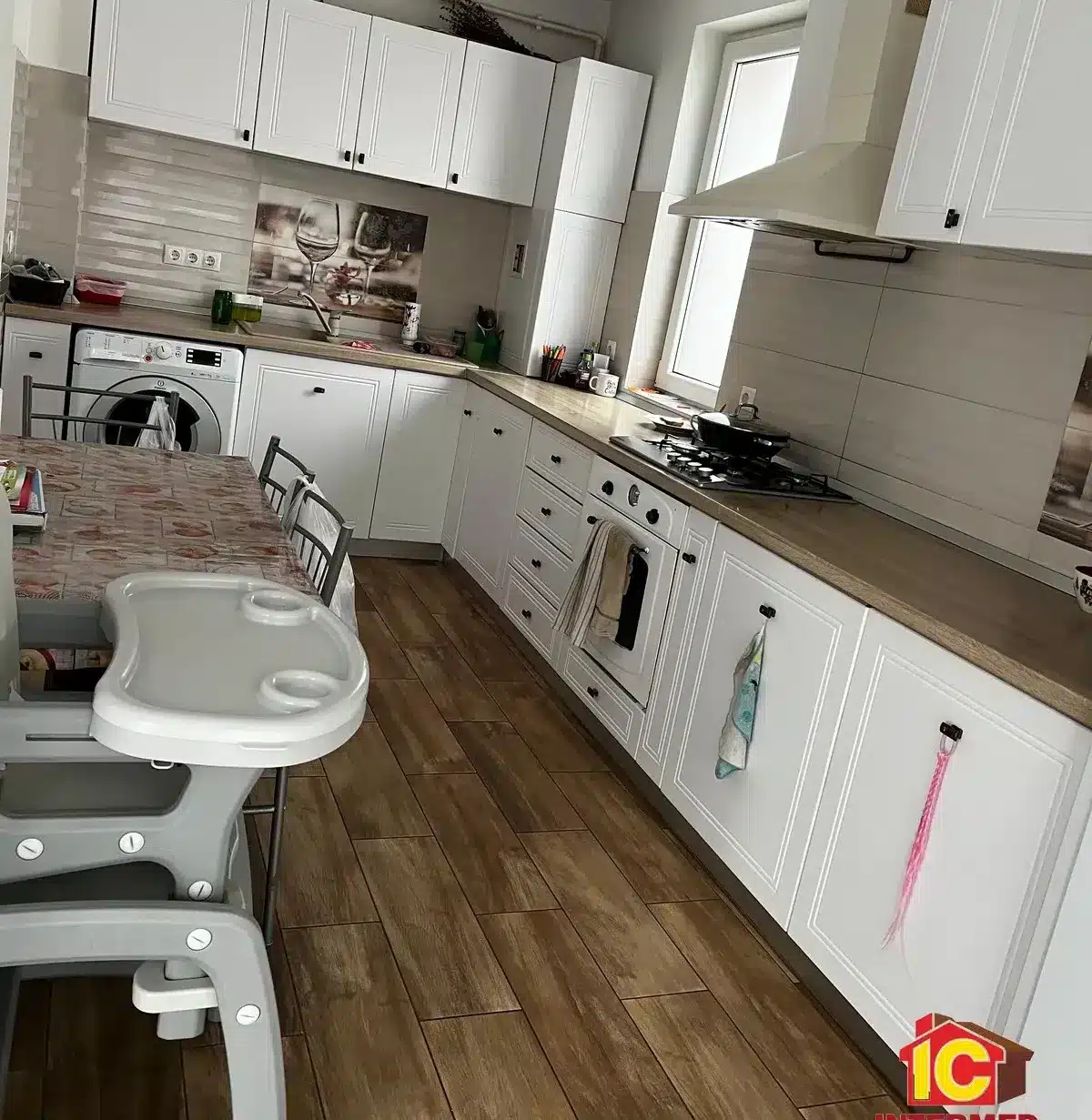 Configurație și finisaje Locuința este vândută complet mobilată și utilată, astfel încât te poți muta imediat. Bucătăria a fost extinsă față de planul inițial. Spațiul a fost integrat pentru a obține o bucătărie mai mare și mai luminoasă. Apartamentul dispune de o baie modernă.