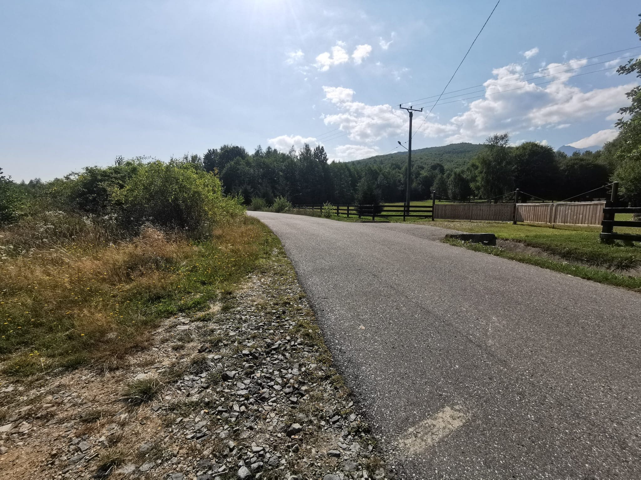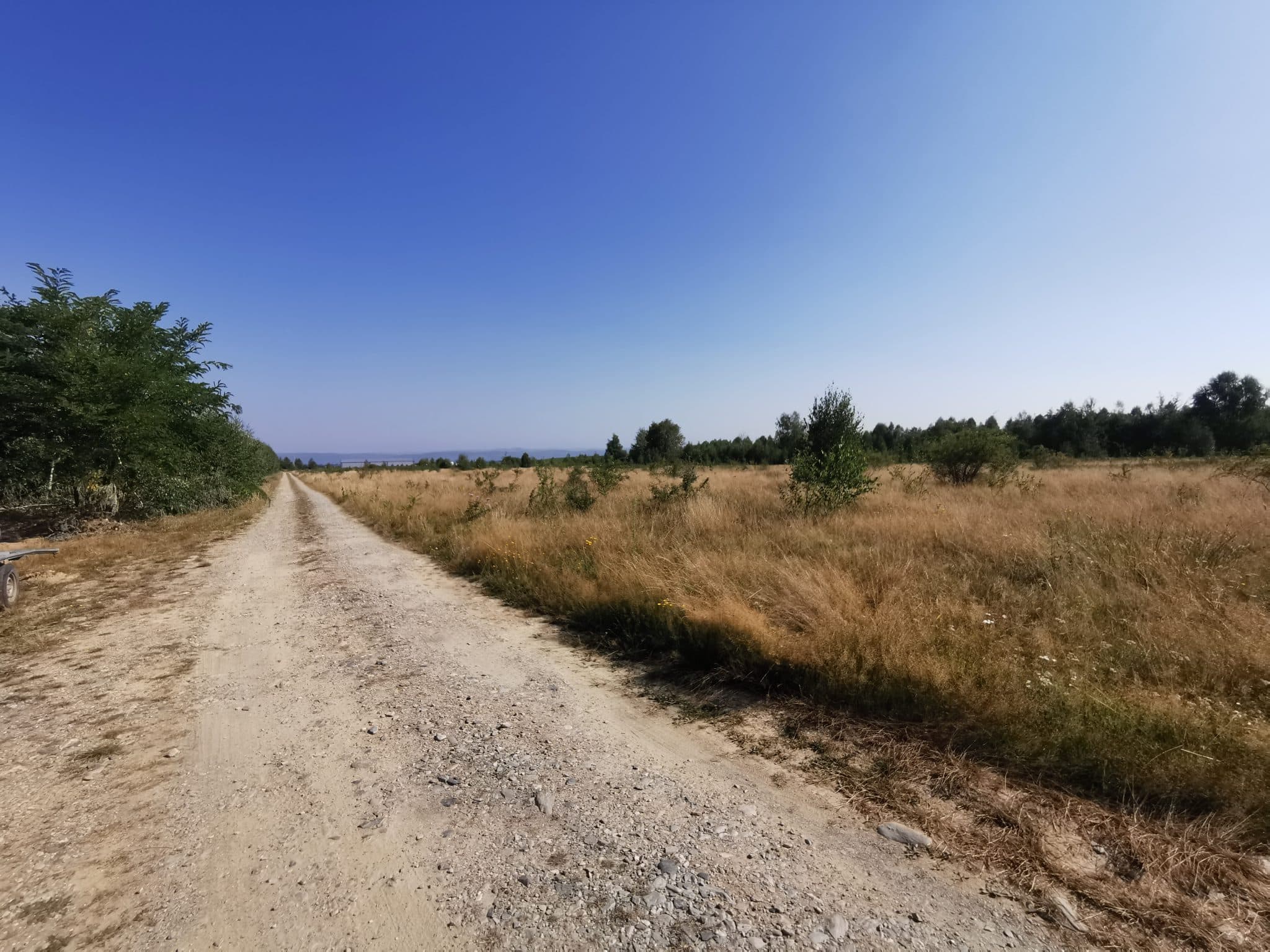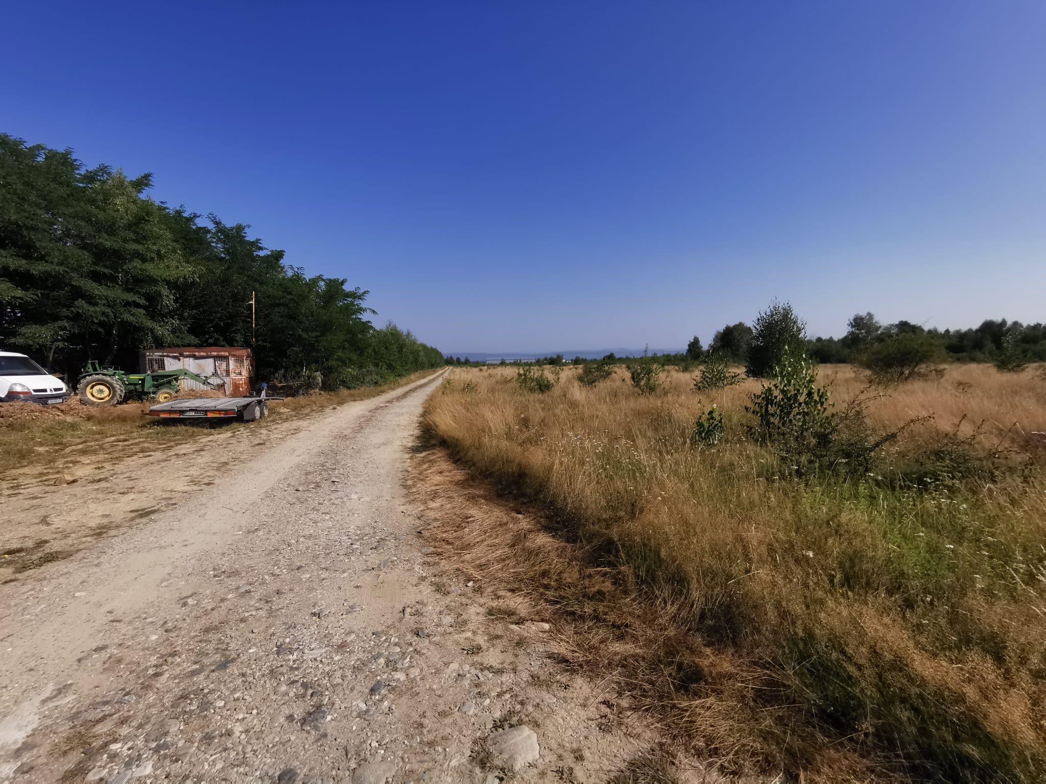 Pe cealaltă latură, terenul beneficiază de o deschidere de aproximativ 260 ml la un drum pietruit. Această caracteristică oferă mai multe posibilități de acces și parcelare.